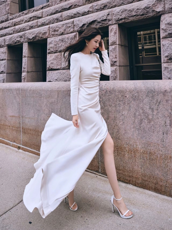 刷到曾黎这组抬手够门的瞬间,直接被这"长腿暴击"惊到两米多高的门,她穿着细带凉高跟,抬手轻描淡写就够到了,那双腿又直又长,比例好得像开了特效,这哪是简单的动作,分明是把"长腿优势"摆在明面上秀!