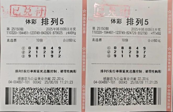 排列5玩法规则简单,单注固定奖金为10万元。由于该购彩者每张彩票都进行了十倍投注,因此单张彩票即获得奖金100万元,两张彩票合计总奖金高达200万元!