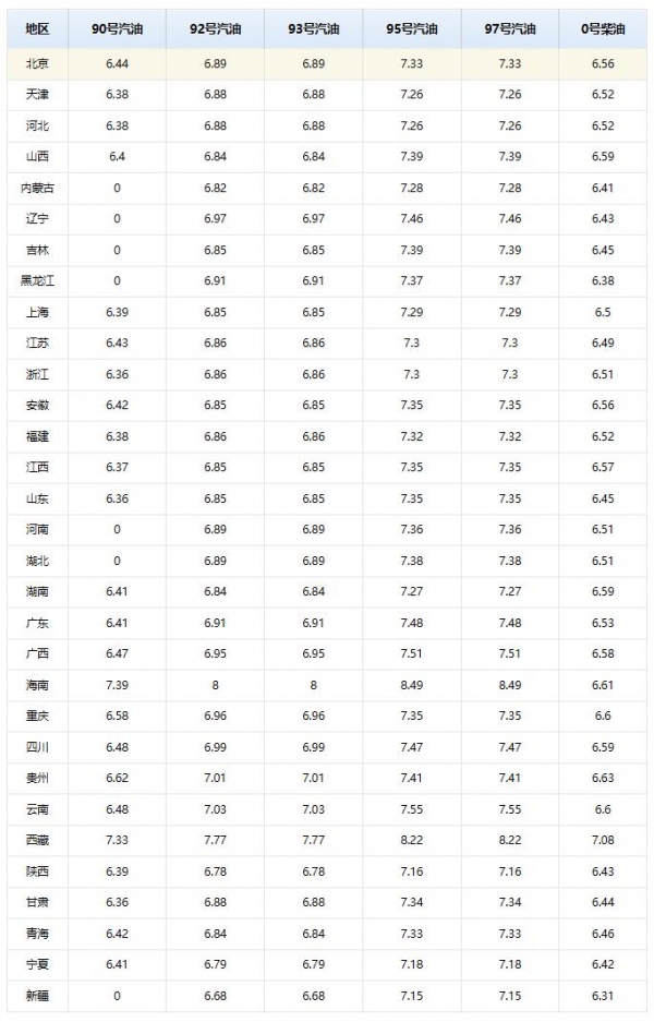 附:全国各地最新92/95号汽油以及0号柴油等报价