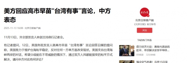 这也是日本领导人在1945年战败以来首次在公开场合上说出"台湾有事就是日本有事"并与行使集体自卫权相关联,首次在台湾问题上表达了日本想要武力介入的野心,首次对中国发出武力威胁,为此在央视最新的报道中对其发起了3分钟的批评和警告。