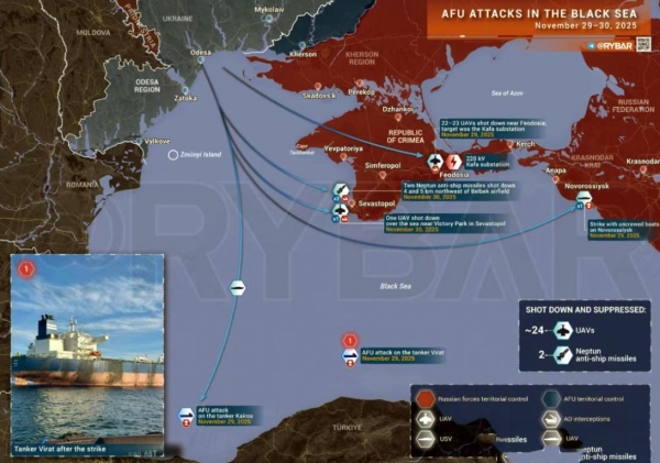 这场海上追杀的引爆点藏在2025年11月底的连环袭击中。11月28日至29日,乌克兰动用"海宝贝"无人艇和FP-1固定翼无人机,在黑海土耳其近海同时袭击了俄罗斯"影子舰队"的两艘油轮--"凯罗斯号"和"维拉特号"。