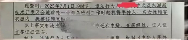 7月1日武汉的王女士在连锁品牌某美发店洗头,洗发过程中王女士睡着了,突然被人伸手进衣服内触摸胸部的动作惊醒,王女士便将对方骂了,而对方辩称是给王女士推肩颈,不存在猥亵行为