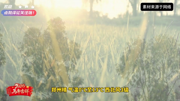 →郑州晴气温0°C至13°C,西北风3级,空气湿度43,光照充足,气温较前一日明显回升。