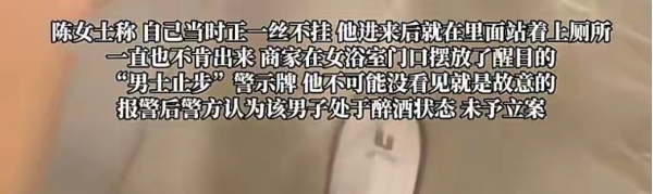事发时,陈女士在足浴店女浴室赤裸身体、毫无防备,一名陌生男子突然闯入。更让人愤怒的是,男子毫无歉意,不仅赖着不走,还当众如厕,无视陈女士的驱赶与警示。
