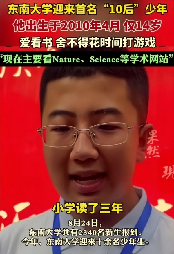 14岁小孩哥到东南大学报到,成为学校首位10后学生