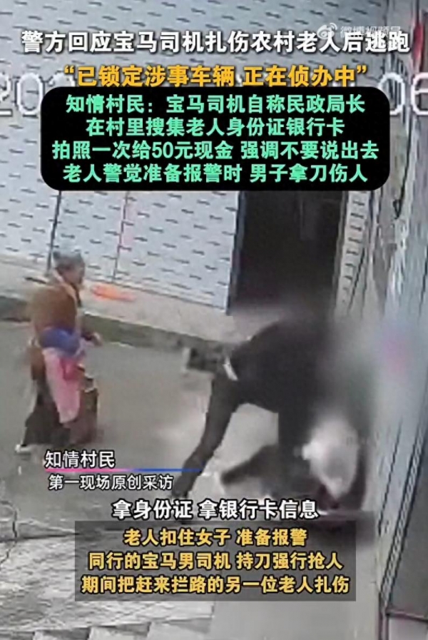 11月5日,湖南益阳梅兰坪村,一对男女驾驶宝马汽车进村,男子谎称自己是"民政局局长",以"扶贫登记"为由,让村民出示身份证、银行卡、贫困户证进行拍照,并表示成功拍照后会给村民50元现金。