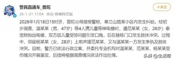 发视频的女子讲述事情经过:邻居小姐姐牵绳遛狗遇到一家四口,狗狗没有攻击或扑咬的意图,4人中的女性突然大叫一声,邻居小姐姐被吓了一跳,说了一句"吓到我了",结果被对方辱骂,双方争执了几句。