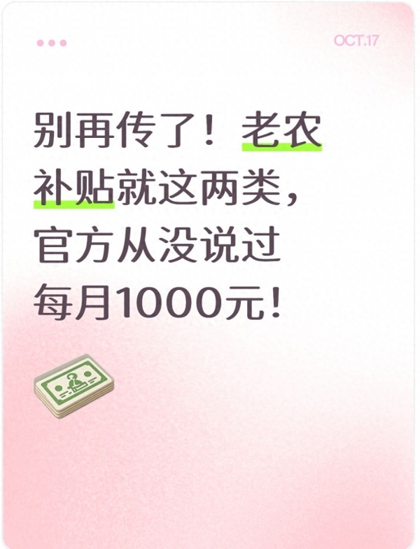 但必须先把话说死:"每月领1000元公粮补贴"是彻头彻尾的谣言。人社部早就在民生政策解读会上明确过,我国没有专门针对"交公粮"的定向高额补贴。为啥会有这谣言?一方面是大家打心底认可老农民的贡献,盼着他们能多拿点福利;另一方面是有人故意夸大博眼球,靠虚假信息赚流量。不过别灰心,国家没忘了这些老人,有两类补贴确实能申请,符合条件的都能领。