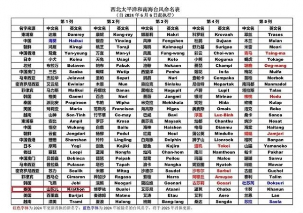 据了解,从2000年1月1日起,西北太平洋和南海的热带气旋开始使用新的命名方法,统一采用具有亚洲风格的名字命名。