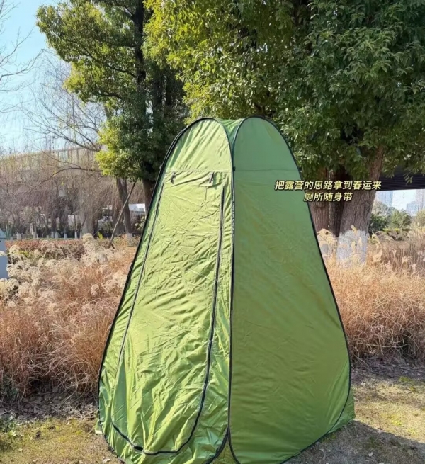 他们还带了折叠帐篷当简易厕所,解决了春运服务区厕所排队的麻烦,这帐篷平时露营也常用。
