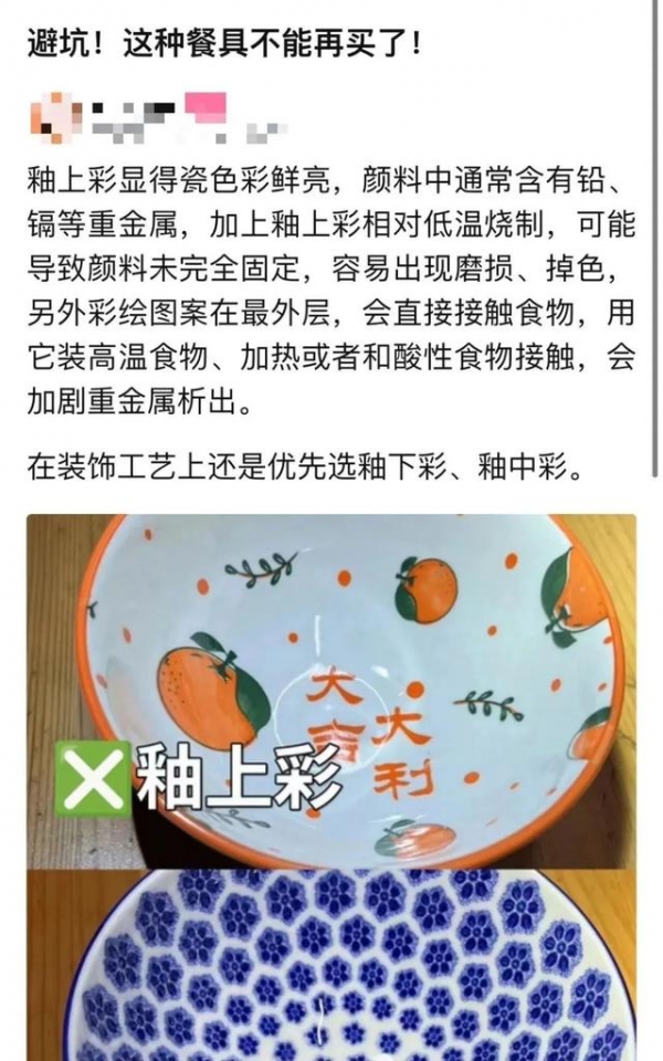 不少人喜欢收集陶瓷碗,但近日有网友发帖称一些色彩鲜亮的餐具如果与食物直接接触可能会对健康产生不利影响。