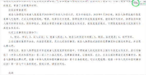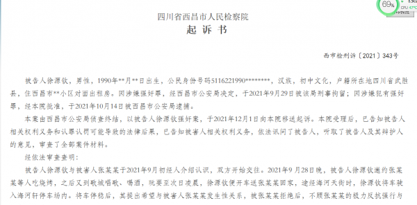 "都已经愿意跟我出来了,玩得这么晚了,装什么…",四川西川,发生一起备受关注的强奸案件:嫌疑人徐某(化名)90年出生,今年30多岁了,之前因为工作忙等原因没能结合,与被害人张某(化名)于2021年9月初经人介绍认识,双方互有好感,便开始交往。2021年9月28日晚,嫌疑人徐某邀约张某等人吃烧烤,之后又到歌城唱歌、喝酒,玩耍至次日凌晨,徐某便开车送张某某回家,途经海河天街时,徐某将车驶入海河轩停车场内。