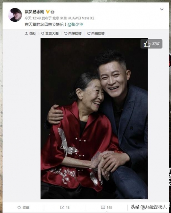 每当母亲节时,杨志刚便会在社交媒体上,发文祝贺张少华,并将两人干母子的关系,大胆的公之于众。