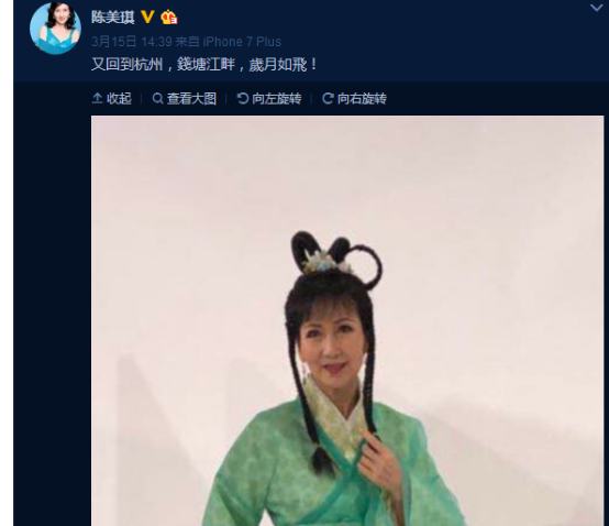 《新白娘子传奇》中白娘子的扮演者赵雅芝和小青的扮演者陈美琪在微博上发文,两人都来到了杭州,或是会在某节目上重聚。