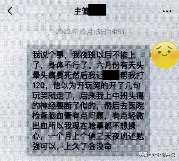 员工拿着医嘱向领导请假,而且员工还很"靠谱"的表示:一个月可以上2-3个夜班。谁知道公司居然不为所动,照旧按照要求该员工和其他员工一样,正常两班倒。