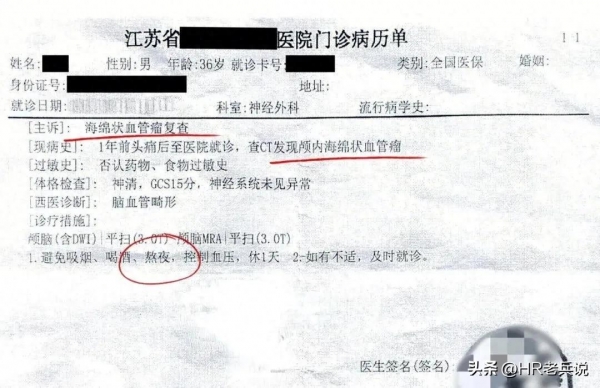 你能相信,在意极爱公司工作了5年的老臣,在岗上班期间因为头晕头疼的不行被120拉走后,竟查出自己得了"颅内海绵状血管瘤",医生给出了"避免熬夜"的医嘱。