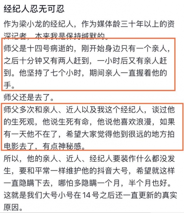 直到1月19日早上,经纪人终于道出了原因,以及他离世的细节,我们才知道大家跟着隐瞒的真相。