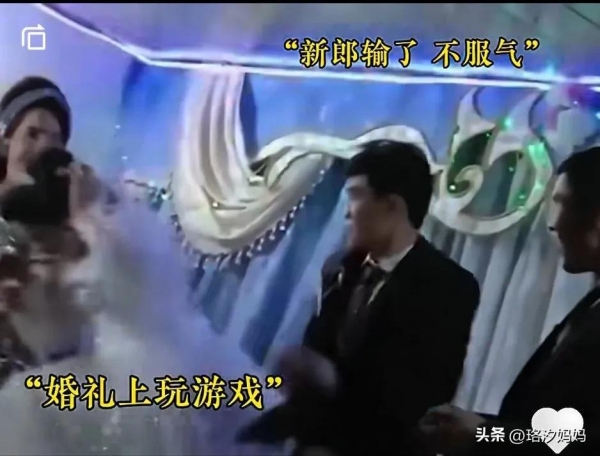 舞台上一对新婚夫妻正在进行一个小小游戏,新娘手速比新郎快些,先完成游戏任务,向宾客们举手,台下的宾客们也纷纷鼓掌,为新娘祝贺,然而就在一瞬间宾客们的蒙了,新郎竟然恼羞成怒的,举起拳头就狠狠的打向新娘头部,而新郎打过新娘后,也丝毫没看出后悔,还在一旁理直气壮,蹑手还想在给新娘一拳头。