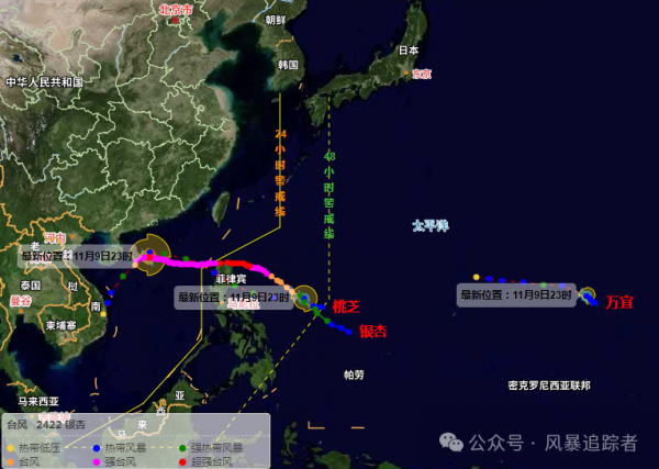 9日晚间时,整个全球热带洋面又再次大变了,除双16级超强台风又大变外,又出现了两个新台风,以至于全球海洋首次出现11月"四风暴"共舞的局面。具体怎么回事呢?实况图显示,西北太平洋除22号银杏外,9日下午,菲律宾以东洋面的新台风胚胎92W和93W相继完成升级,分别成为今年第23号台风桃芝和第24号台风银杏。加上北大西洋的飓风拉斐尔,我们再次确定了,11月全球洋面出现了首轮"四风暴共舞"的局面,那么四风暴最新情况又是咋样呢?