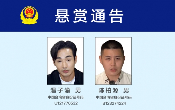 泉州公安悬赏征集温子渝、陈柏源犯罪线索