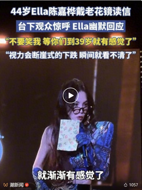 44岁Ella陈嘉桦在演唱会戴老花镜读信,幽默回应:不要笑我,等你们到39岁就有感觉了,视力会"断崖式降落"