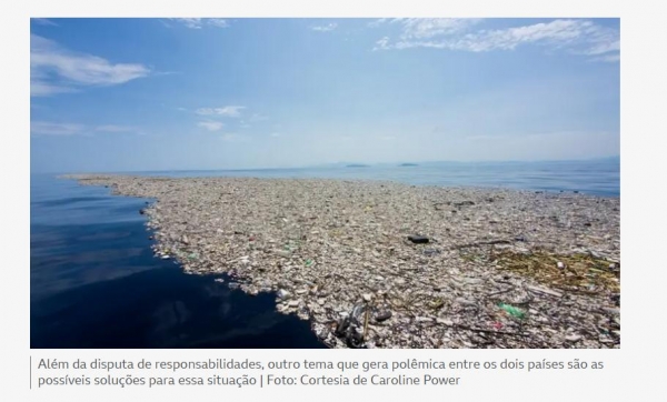 右半边的图片则属法新社所有,是鲍尔拍摄的位于洪都拉斯附近加勒比海域的垃圾带组图中的另一张。此图曾在2017年被BBC和《镜报》等媒体使用。
