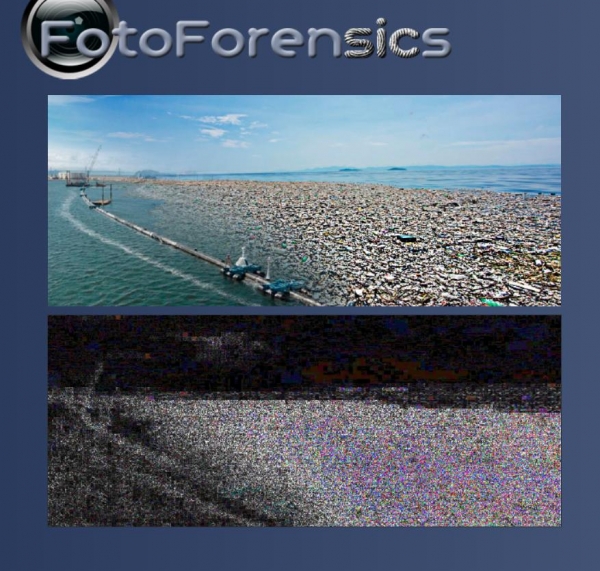 误差水平分析(ELA)发现,特朗普发布图片右半部分的水体亮度要高于左半部分,说明此部分图片可能经过后期处理。