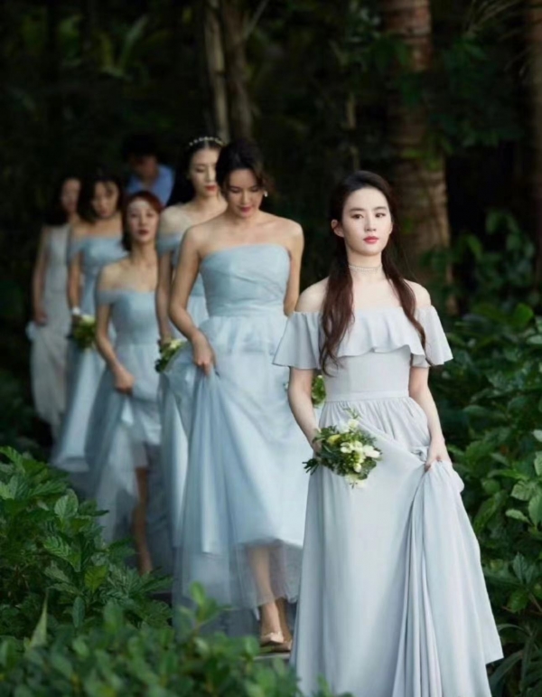 这是2019年,刘亦菲参加大学好友兼演员周扬的婚礼,她受邀当了伴娘。在婚礼那天,刘亦菲穿着淡雅的伴娘裙,和一众伴娘一同走来,简约的设计与刘亦菲的气质完美融合,在众多伴娘中,即使穿着差不多的伴娘服装,刘亦菲仍以她独有的光芒成为全场的焦点。