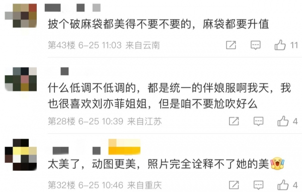 网友对这组照片反应强烈,很多人半开玩笑的说"谁这么勇敢找刘亦菲当伴娘,不怕新郎悔婚吗?"这种调侃让人想起了《玫瑰的故事》中老周士辉,在与未婚妻芝芝领证的前一秒与新娘悔婚,跑去追黄亦玫。真让人担心周扬的老公也当场悔婚。