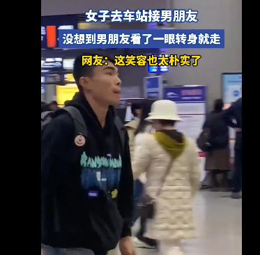 11月14日,广东,一女子去车站接男朋友,没想到男朋友看了一眼转身就走了,女生赶紧喊男友,男生则是反复打量女子才认出来,原来女子当天是化了妆的,和平时素颜不太一样,男友才没认出来。
