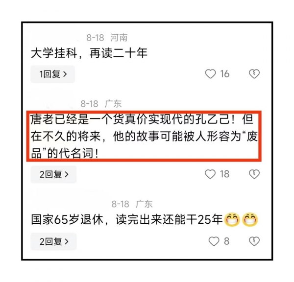 网上还有人称唐尚珺是现代孔乙己的, 还说他的故事可能被人形容为"废品"的代名词,网友众说纷纭,简直是不堪入目。