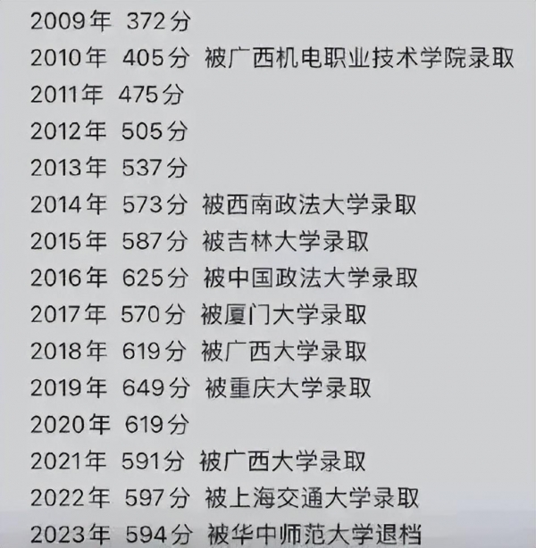 他曾经为了执著清华放弃了政法大学、厦门大学、重庆大学,又连续两年被华南师范大学录取,而今年,他终于决定去读大学,这份"迟到"的录取通知书想必对他本人也有特别珍贵的意义吧。