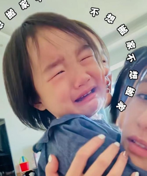 在听到妈妈的话后瞬间就哭了出来,表示自己的不满。