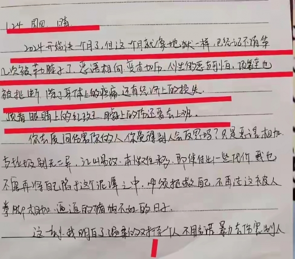 董文卉的日记本里,记录了这段关系里长期的压抑与痛苦,让她长期处在焦虑与恐惧中。