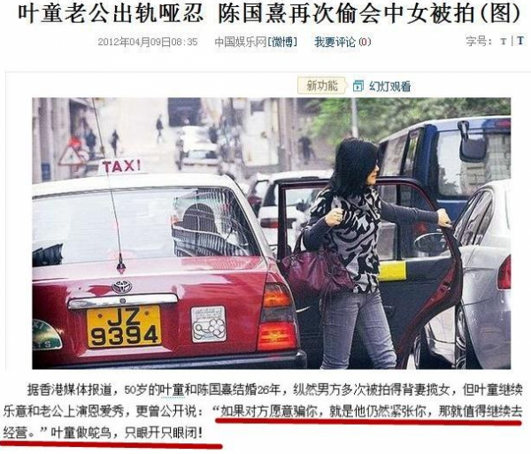 而叶童面对记者提问,力挺丈夫,言之凿凿他不会出gui。