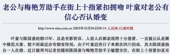 没过多久,叶童再次站上了舆论的风口浪尖上,她和陈国熹的婚姻又被提及。