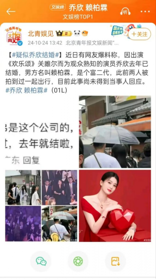 这不禁让人感受到次元壁破圈的感觉,毕竟,在这件事之前,乔欣还只是我们耳熟能详的女明星,如今她竟然已经成为了整个亚洲数一数二富豪的弟媳妇。