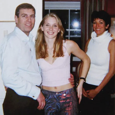 2021年,安德鲁、爱泼斯坦案关键证人弗吉尼亚·朱弗雷以及吉丝兰·马克斯韦尔合影