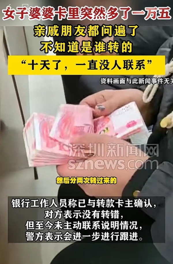 张女士婆婆的15000元陌生转账,转账人说没转错,民警还在查,到底是转错还是陷阱?