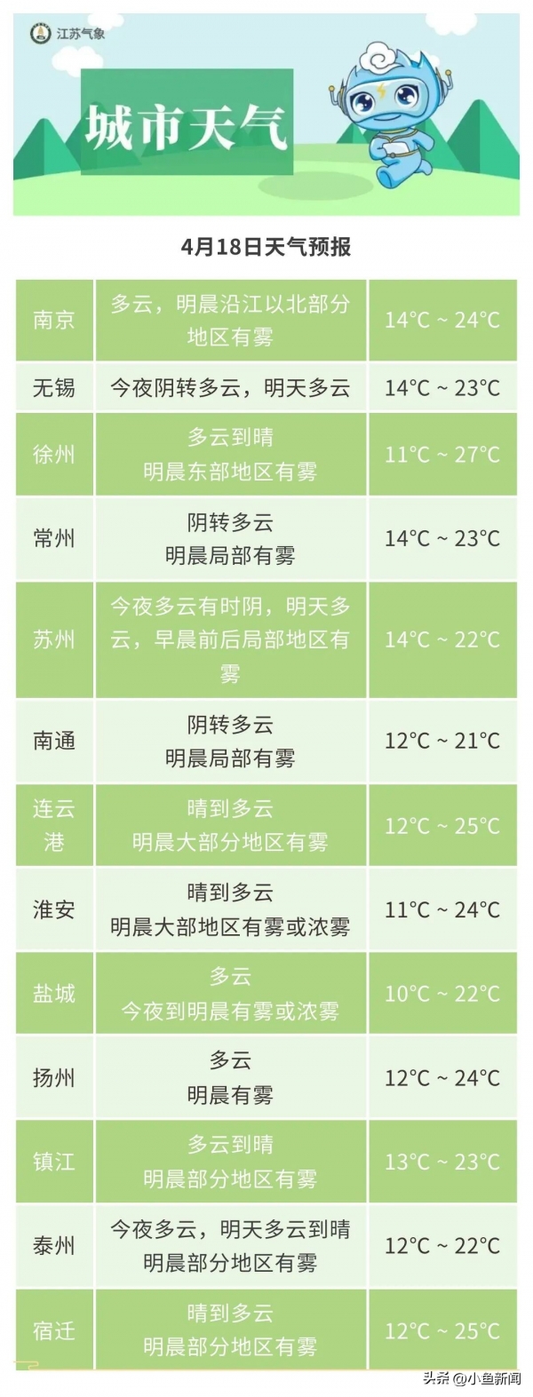 最低温度:本省东北部地区10~11℃,苏南南部地区15℃左右,其他地区12~13℃。全省偏东风4-5级。