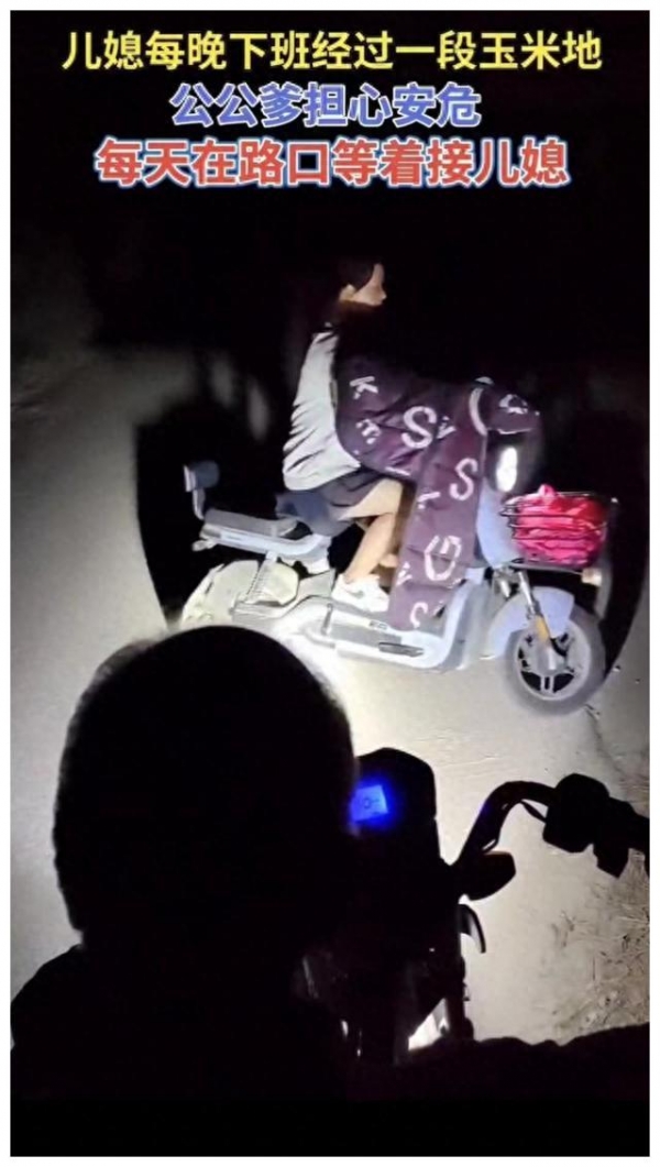 为了小丽的安全,她的公公每天都会来接她下班回家。公公是一位年迈的老人,他坚持这个习惯已经很多年了。他骑着一辆电动车,车灯闪亮,坐在车上的是他的儿媳小丽。