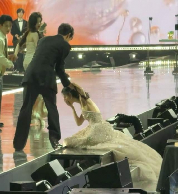 2025 年星光大赏的舞台上,孟子义意外摔倒,这一幕可真是惊呆了不少人。高跟鞋踩到长裙摆,膝盖磕在台阶上,看着就疼。但紧接着李昀锐的举动,那可真是让人眼前一亮,瞬间引发了全网热议,这背后到底有啥故事呢?