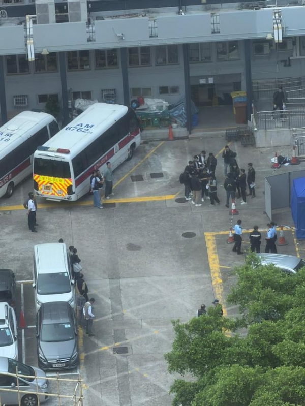 香港观塘警署发生开枪案,上弹及退弹区遗下一大滩血迹,有围板被围封及警员驻守。大批军装及便衣警员聚集于停车场,现场有救护车。