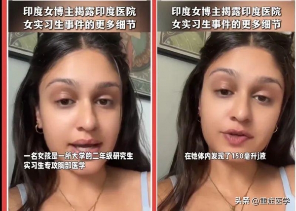 据一个印度女博主在社交媒体上揭露的案件的细节,称该31岁的女医生是该医学院的一名研究生,研究的是胸部医学,在案发现场,女医生双脚被分开向两个方向,双腿向后弯曲90度,骨盆骨折。