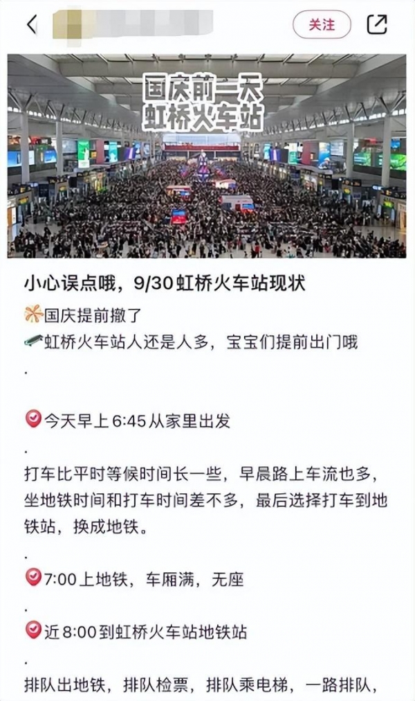 9月30日,铁路上海站迎来客流高峰,比日常客流多20余万人次,上海虹桥站人山人海。