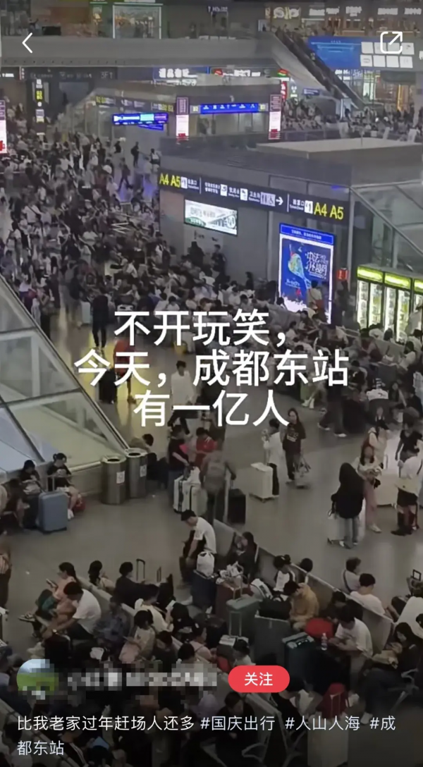 成都东客站内"水泄不通""有一亿人"。