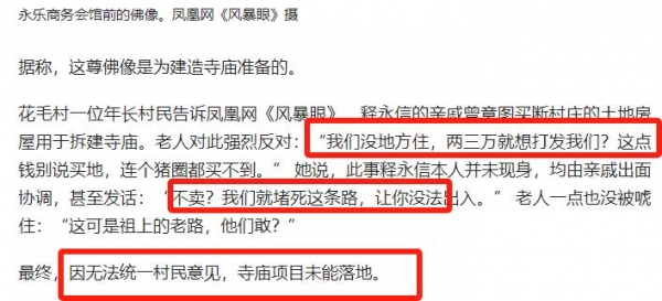 这场强买强卖的闹剧,最终因村民集体抵制而未能成功,但直到今天,此事才算真的公开,如此重大且恶劣的做派竟然能够被隐藏如此之久,释永信家族的手段之缜密可见一斑。