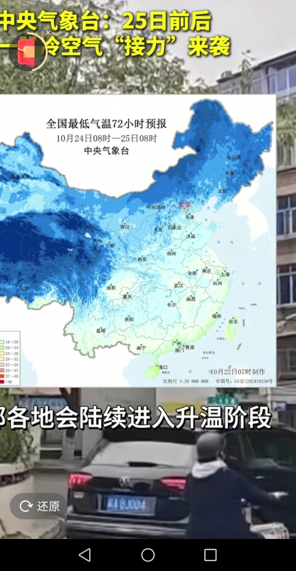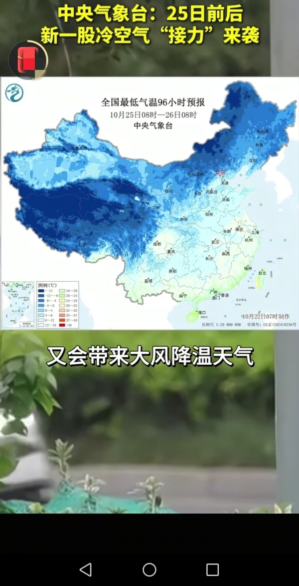 从中央气象台的预报来看,10月22日到25日,中东部的升温就跟蜗牛爬似的,刚有点暖意,25日前后新冷空气一到,又得降温刮风。咱们可以看看全国最低气温的预报图,那蓝色的区域可是不少,这冷空气的势力范围很广。