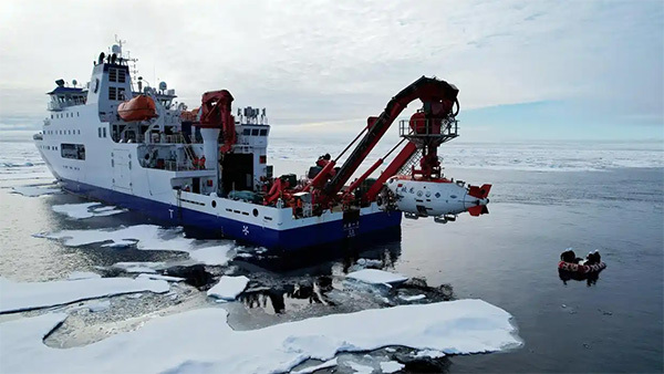 中国在北极地区的科考也不断取得突破。今年7月15日,"深海一号"船携"蛟龙"号载人潜水器从青岛启航,执行中国大洋92航次第一航段,于9月8日返回青岛。航次期间,在"雪龙2"号船的破冰保障下,我国于北极海域完成了10余次"蛟龙"号载人深潜、ROV(水下机器人)调查和CTD(温盐深仪)采水等作业。