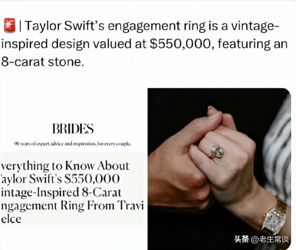 泰勒·斯威夫特那枚令人瞩目的钻戒,外网消息说是采用特殊工艺黄金手工雕花打造,价值55万美元,泰勒·斯威夫特作为流行文化的知名女歌手,这个钻戒的价格无疑在国外是会引起不少的民众讨论。
